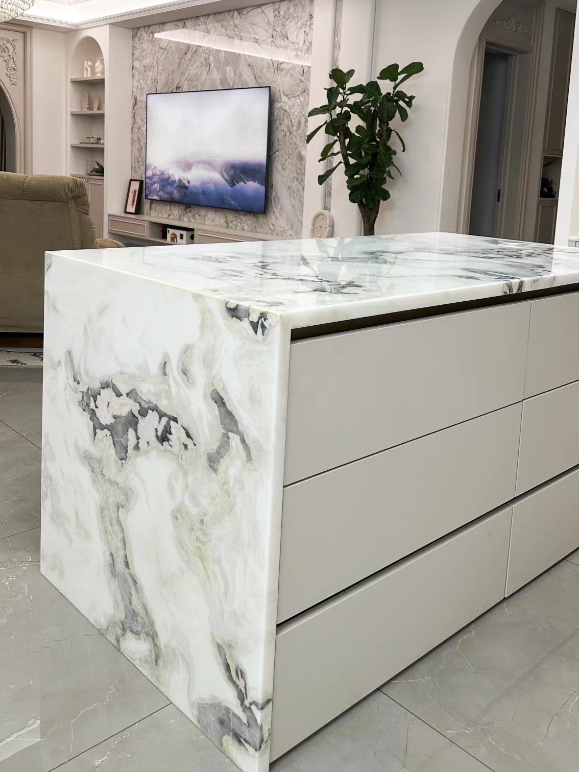 Artificial stone is a natural stone imitation product made of natural mineral powder, resin (or cement) and pigment through mechanical mixing, vacuum pressurization, high temperature curing and other processes. It is widely used in composite materials for construction and interior decoration, and is popular for its beautiful appearance, strong durability and relatively affordable price.